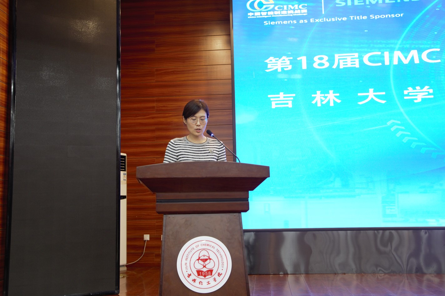 吉林大学机械与航空航天工程学院程丽丽教授致辞,她充分肯定了吉林化工学院承办本次赛事所做的准备工作,并对吉林化工学院为吉林自动化教育发展所做的努力表示衷心感谢。