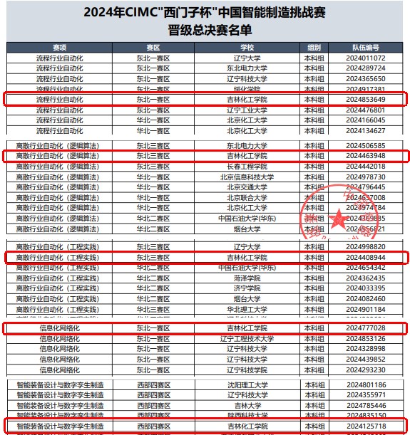 我校共有16支队伍参赛,在朱建军、金红娇、孟凡清、辛鹏、张慧颖、孙澄宇等教师指导下,经过吉林、辽宁、北京三个分赛区激烈比赛,荣获省级特等奖4项、一等奖8项、二等奖1项、三等奖2项。其中流程行业自动化、离散行业自动化(逻辑算法)、离散行业自动化(工程实践)、信息网络化、智能装备设计与数字孪生制造各有一支队伍晋级全国总决赛,实现我校在该项赛事上晋级国赛队伍总数的突破。